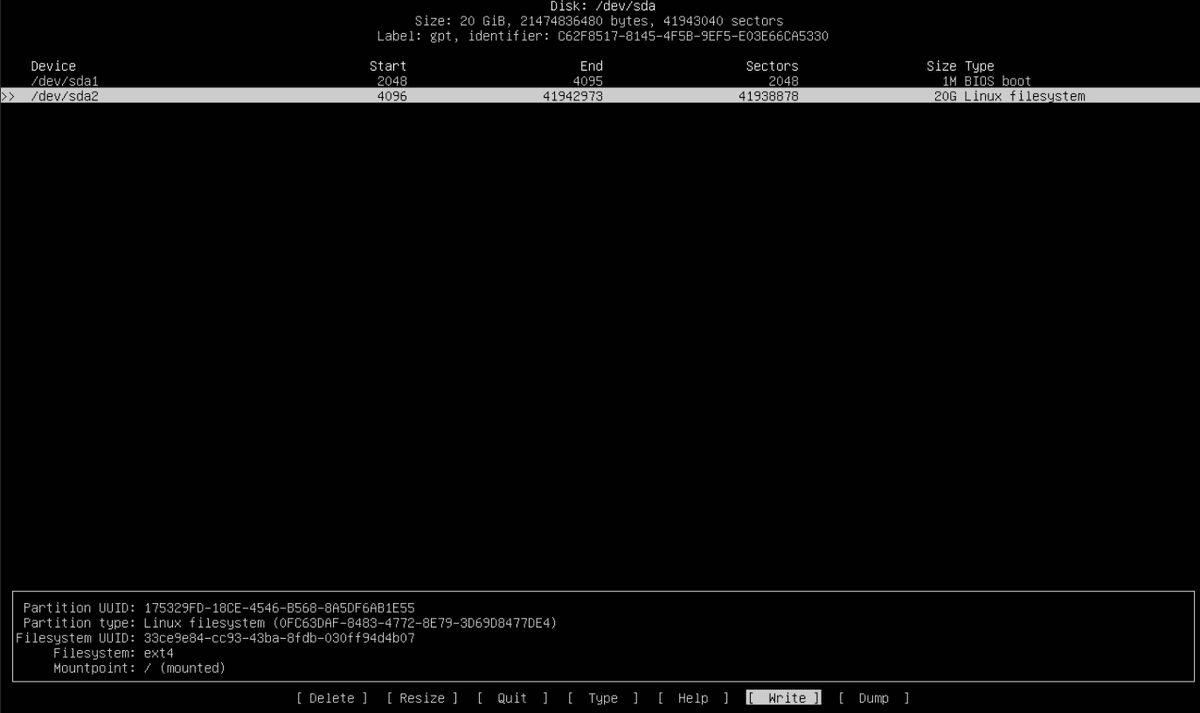Для того чтобы изменения применились необходимо добавить значения в таблицу раздела, для этого внизу выбираем Write и нажмите Enter: